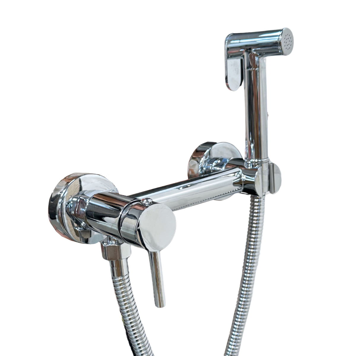Fabricada en bronce cromado Brillante.Ideal para espacios reducido donde la instalación de un bidet resulte imposible.Distancia entre ejes de 15 cm, incluye excéntricas permitiendo llegar a 17 o 13 cm. Flexible de 1,20 metros.Profundidad total: 11,5 cmSoporte y gatillo en bronce cromado con corte.Garantía de 5 años por defectos de fabricación