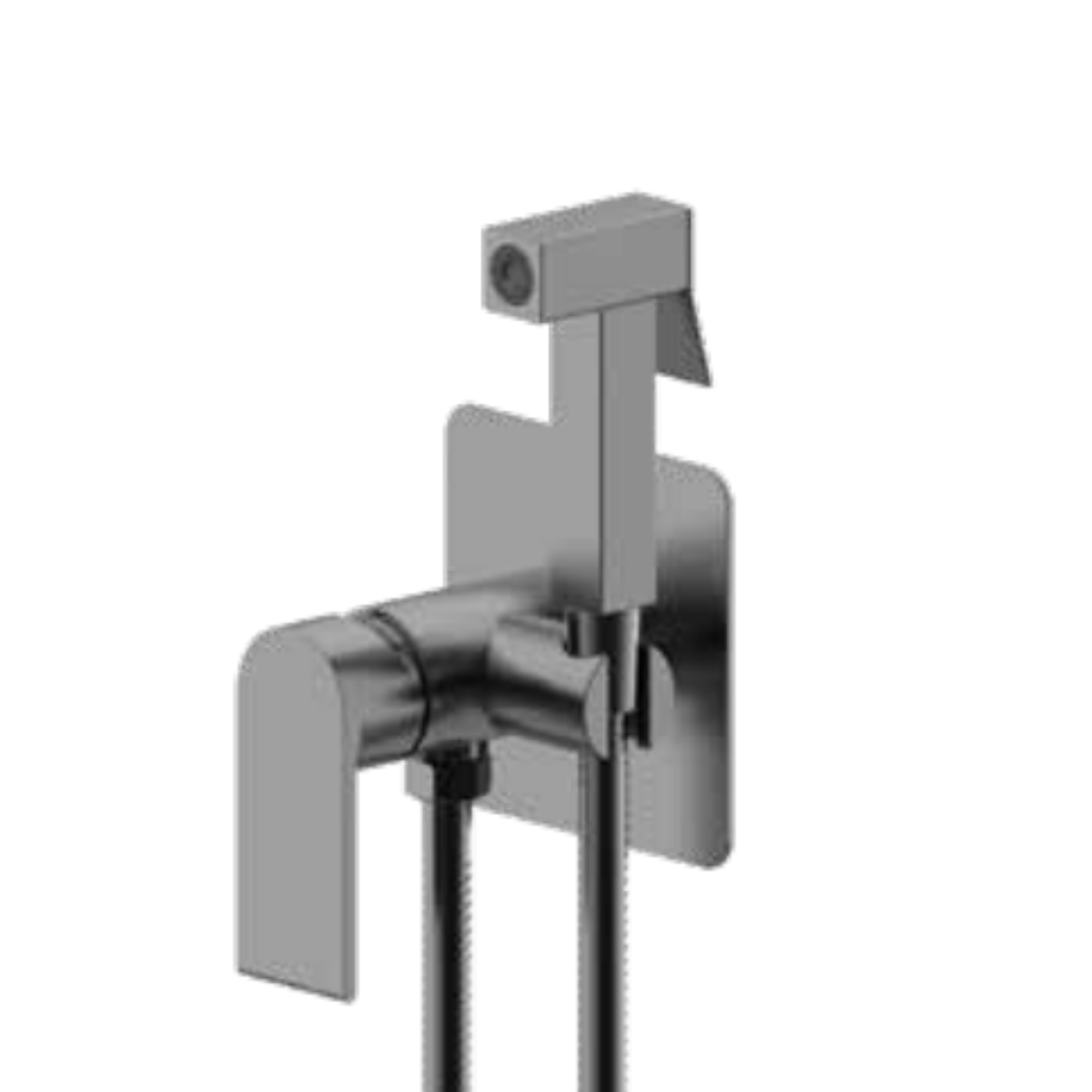Características- Diseño empotrable: Ahorra espacio y brinda una estética limpia y minimalista.- Monocomando de fácil uso: Control preciso de caudal y temperatura con una sola mano.- Gatillo ergonómico: Ideal para higiene íntima o limpieza del inodoro.- Material: Acero inoxidable de alta calidad, resistente a la corrosión.- Terminación: Gris satinado, elegante y fácil de combinar.- Garantía: 5 años de respaldo para tu tranquilidad.