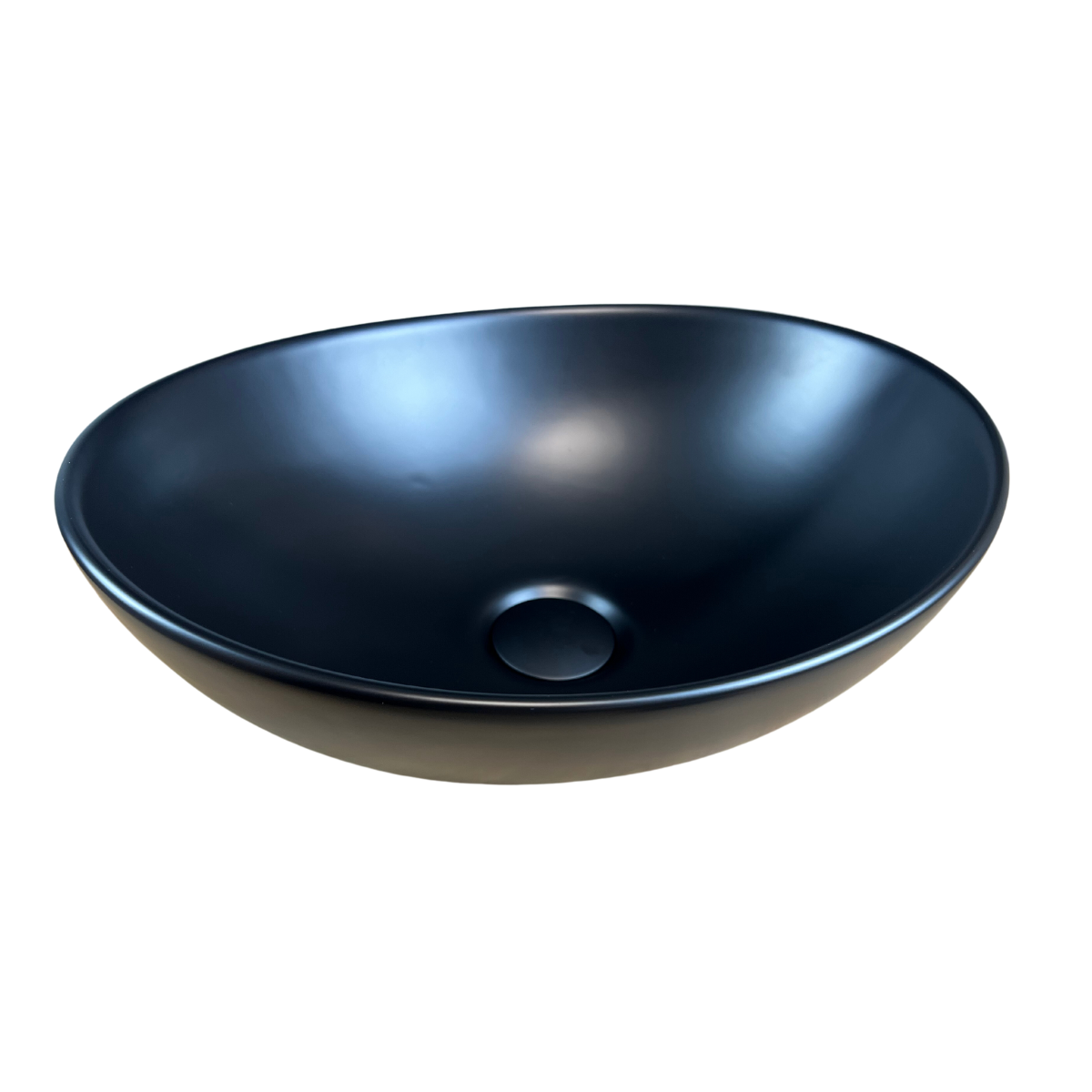 Bacha de apoyoForma OvaladaColor/acabado: Negro mateMaterial: LozaMedidas: 41 cm largo x 33 cm ancho x 14 cm profundidad