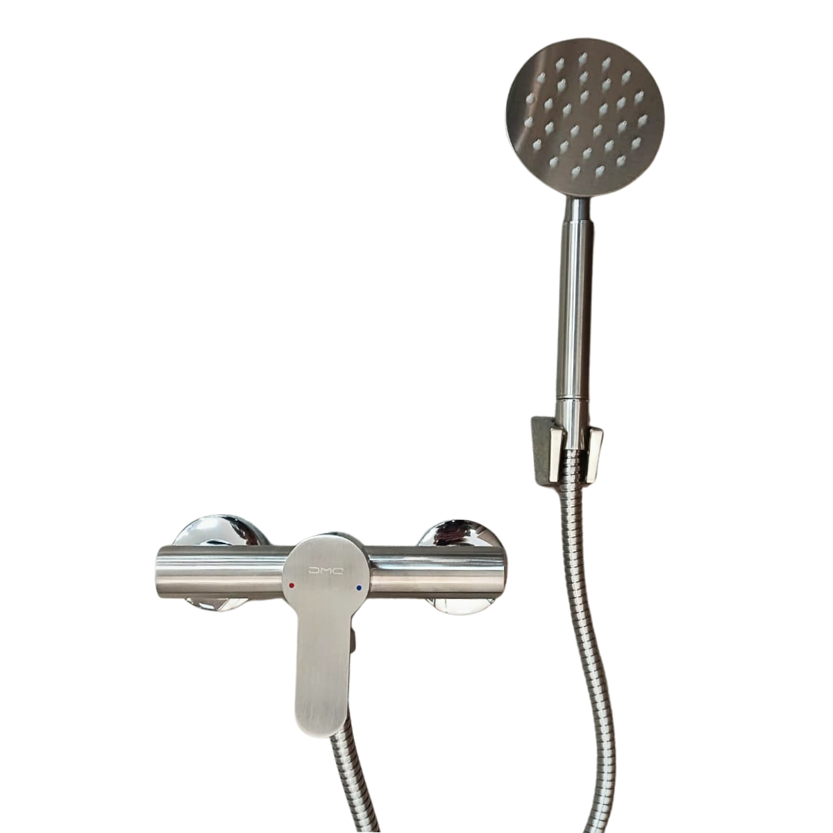 Características- Monocomando de ducha exterior: Permite regular caudal y temperatura con un solo movimiento.- Fabricado en acero satinado: Alta resistencia a la humedad y acabado elegante.- Duchador manual con flexible metálico y soporte de pared.- Diseño moderno y minimalista: Perfecto para baños actuales.- Fácil instalación y mantenimiento.