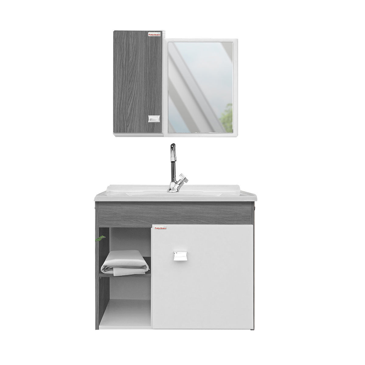 Mueble aéreo de baño con botiquín y bacha de resina natural. Mueble fabricado en MDF color Etna